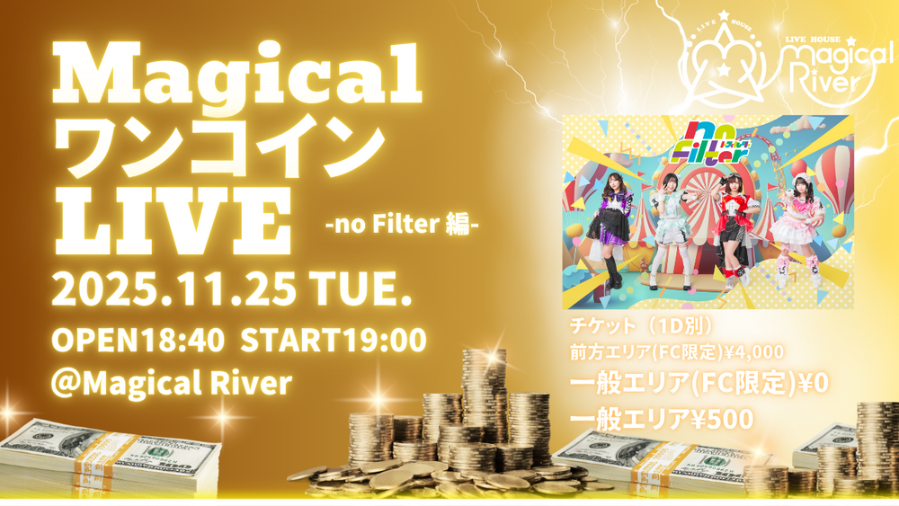 【FCチケット】 Magical River主催 Magical ワンコインLIVE -no Filter編-